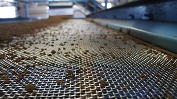 The coarsest peat is carried over to the "cutters", where it is cut into smaller pieces.