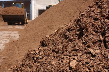The raw materials are transported by truck from the peat bog to the factory stock area.